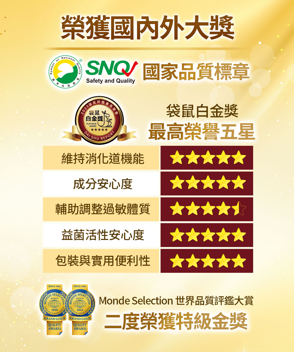 國家健康食品雙認證:輔助調整過敏體質、胃腸功能改善;改變細菌叢生態,使排便順暢;幫助維持消化道機能;促進新陳代謝,調整過敏體質產品容量