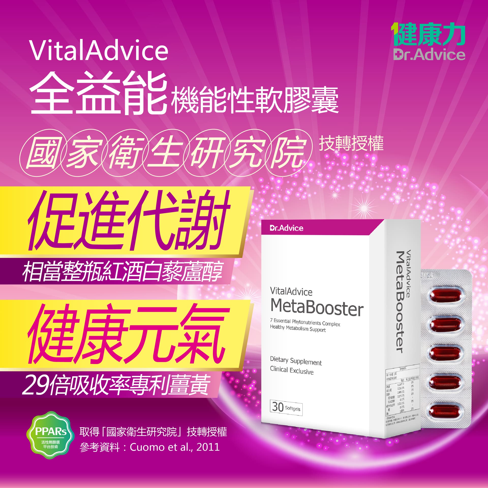 國家衛生研究院技轉授權活性平台技術;調節生理機能,開啟健康之鑰;增強體力、精神旺盛、促進新陳代謝、健康維持產品容量